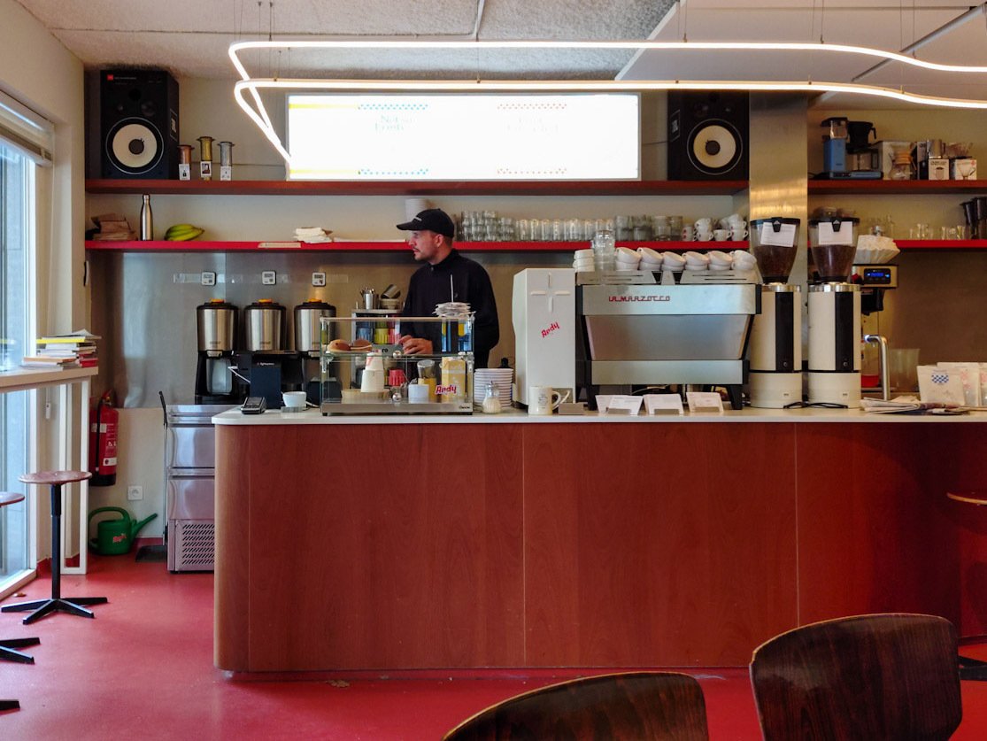 店内はミニマリストなデザインに、レトロモダンなアクセントが効いた空間。白いタイルのカウンターと木製の家具が調和し、壁には地元アーティストの小さなスケッチが飾られています。テラス席は秋の陽気を楽しむ人で賑わい、土曜の朝にはDJセットが流れることもあるといいます。日常のコーヒーをアートに昇華させ、コミュニティを繋ぐ場を目指しているのだそう。地元のランニングクラブを主催したり、近隣のベーカリーとコラボしたイベントを開催したりと、アンディ・ロースターズは単なるカフェを超えた存在となっています。
