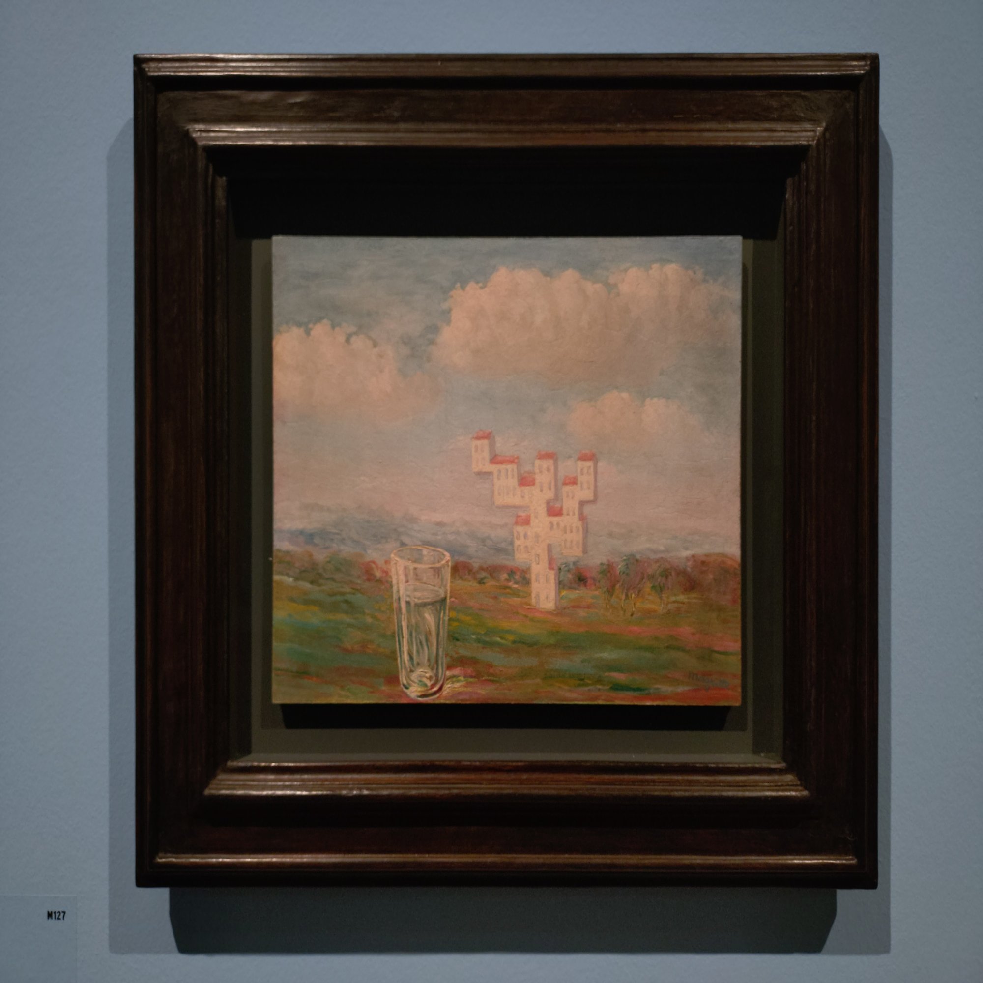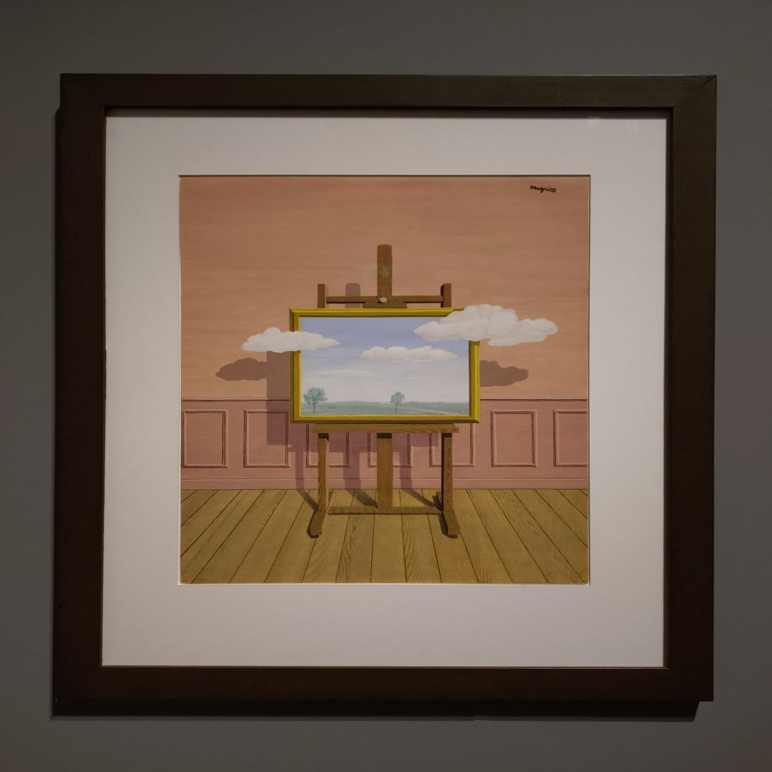 1938年にマグリットが講演したのちにKMSKAが購入した作品。室内・絵画・風景の関係があべこべに描かれています。