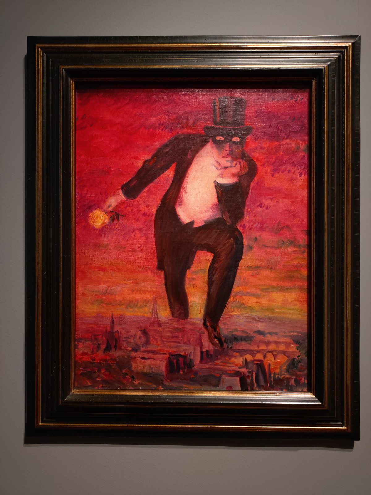 本当にマグリットが描いた作品なのか疑いたくなるモティーフと色彩です。ルノワール時代と呼ばれる暖色を多用した時期に描いた作品で、フランスの人気推理小説シリーズに登場する犯罪者のヒーロー(?)を描いたものだそうです。