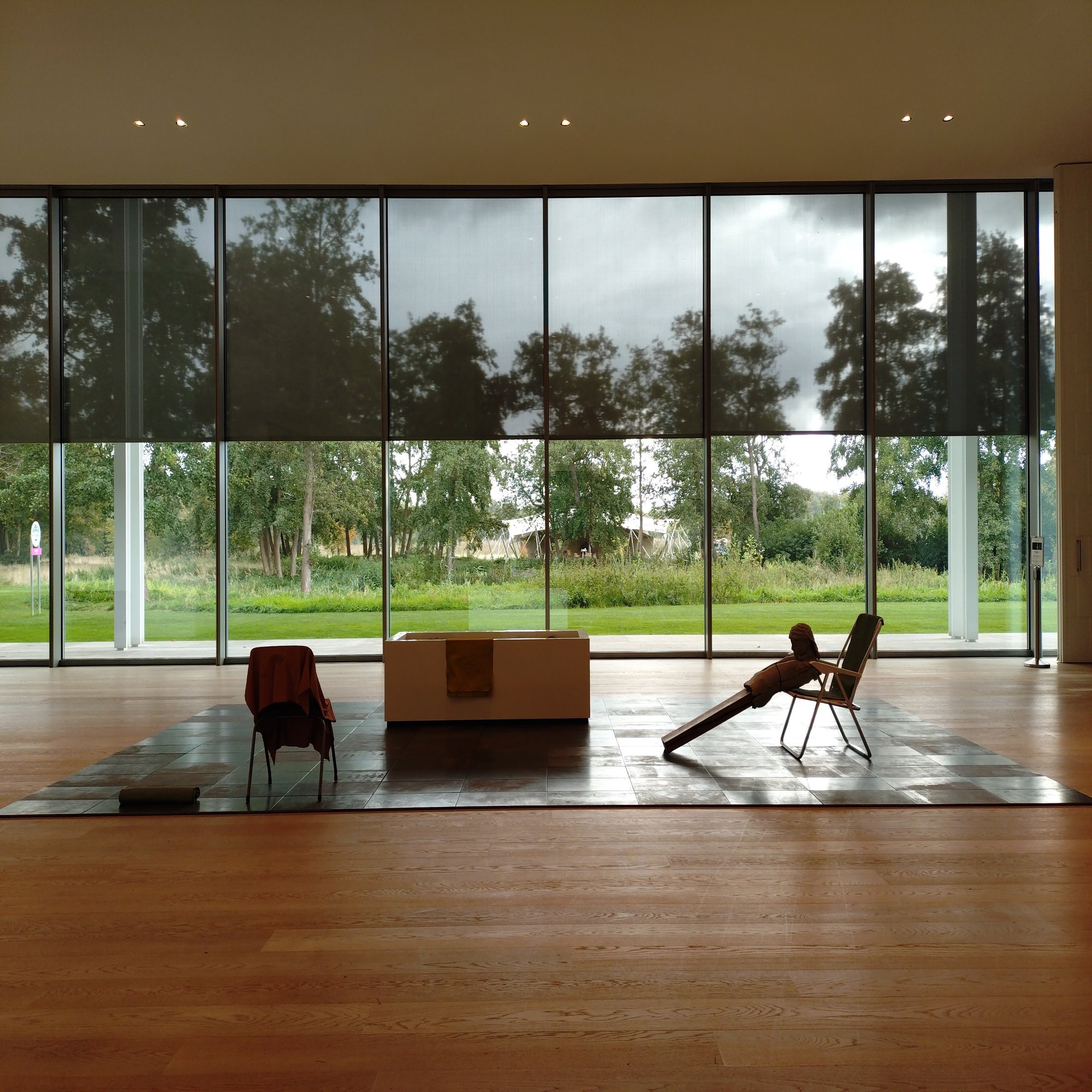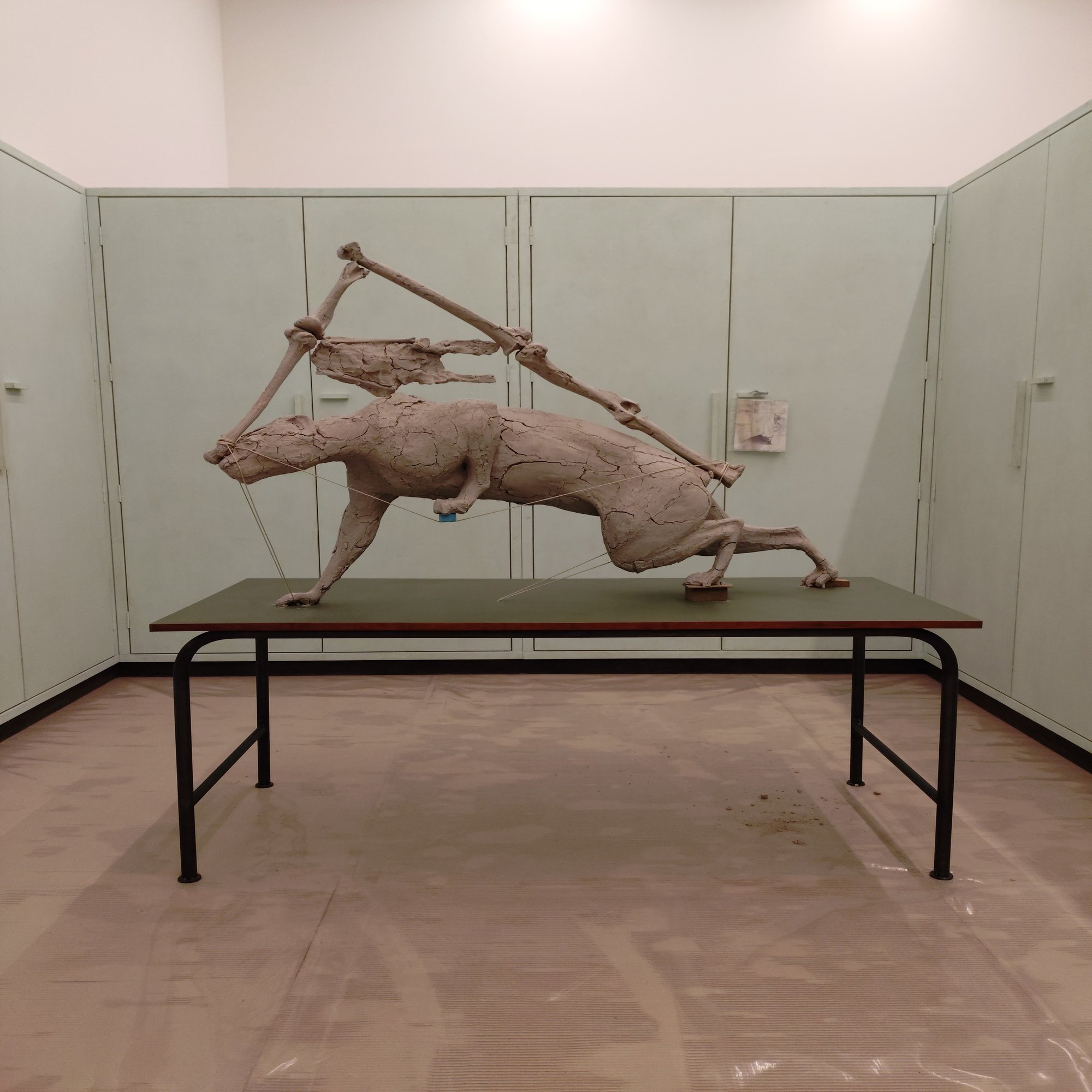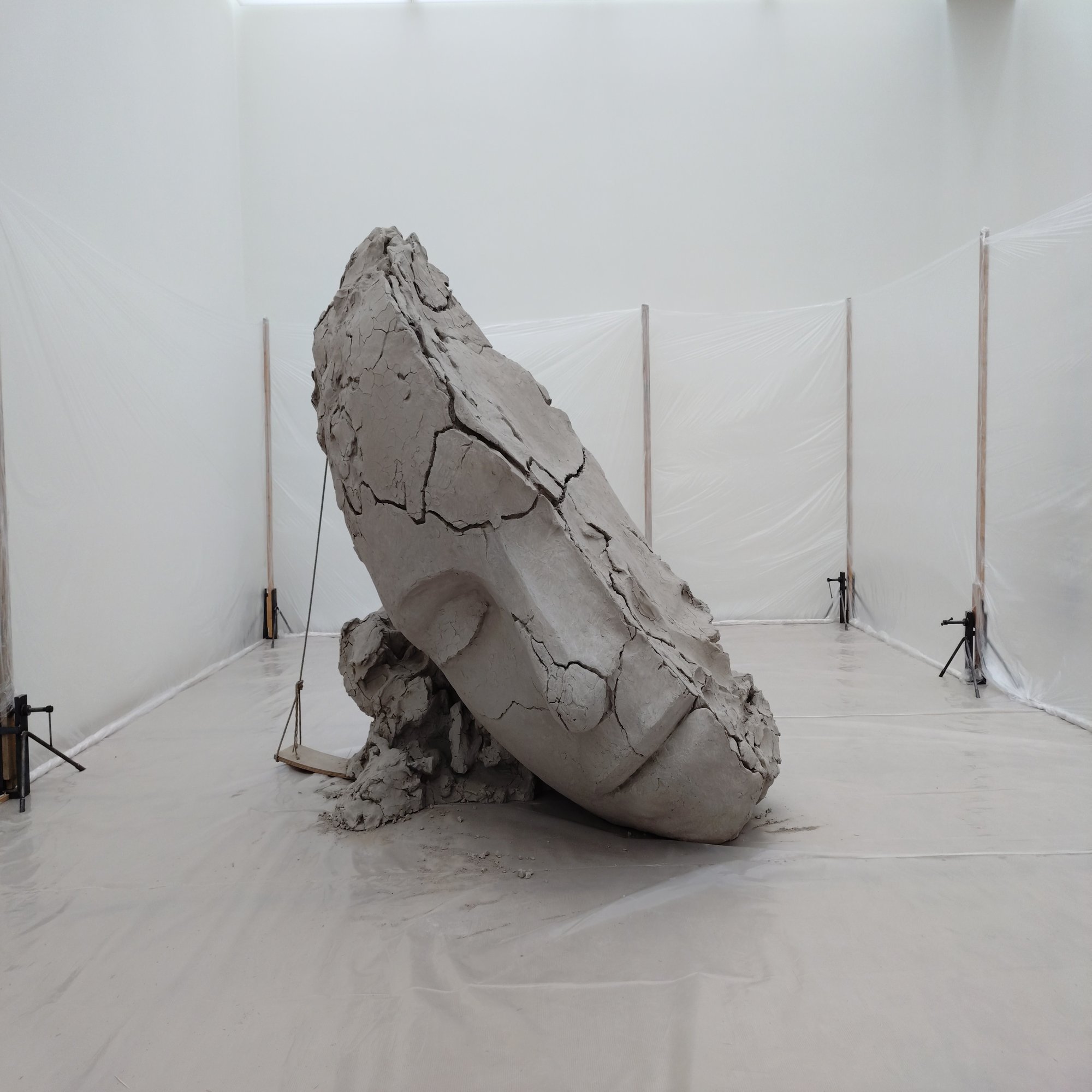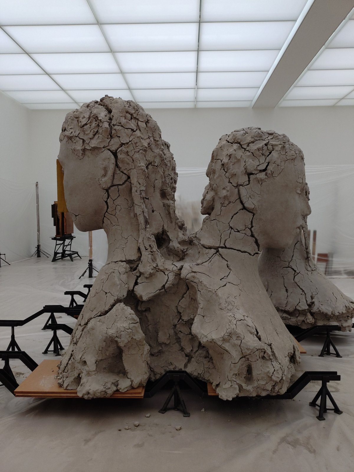 フォーリンデン美術館の洗練されたホワイトキューブの中に、突如現れた「制作途中」の作品が置かれたアトリエのような空間。
