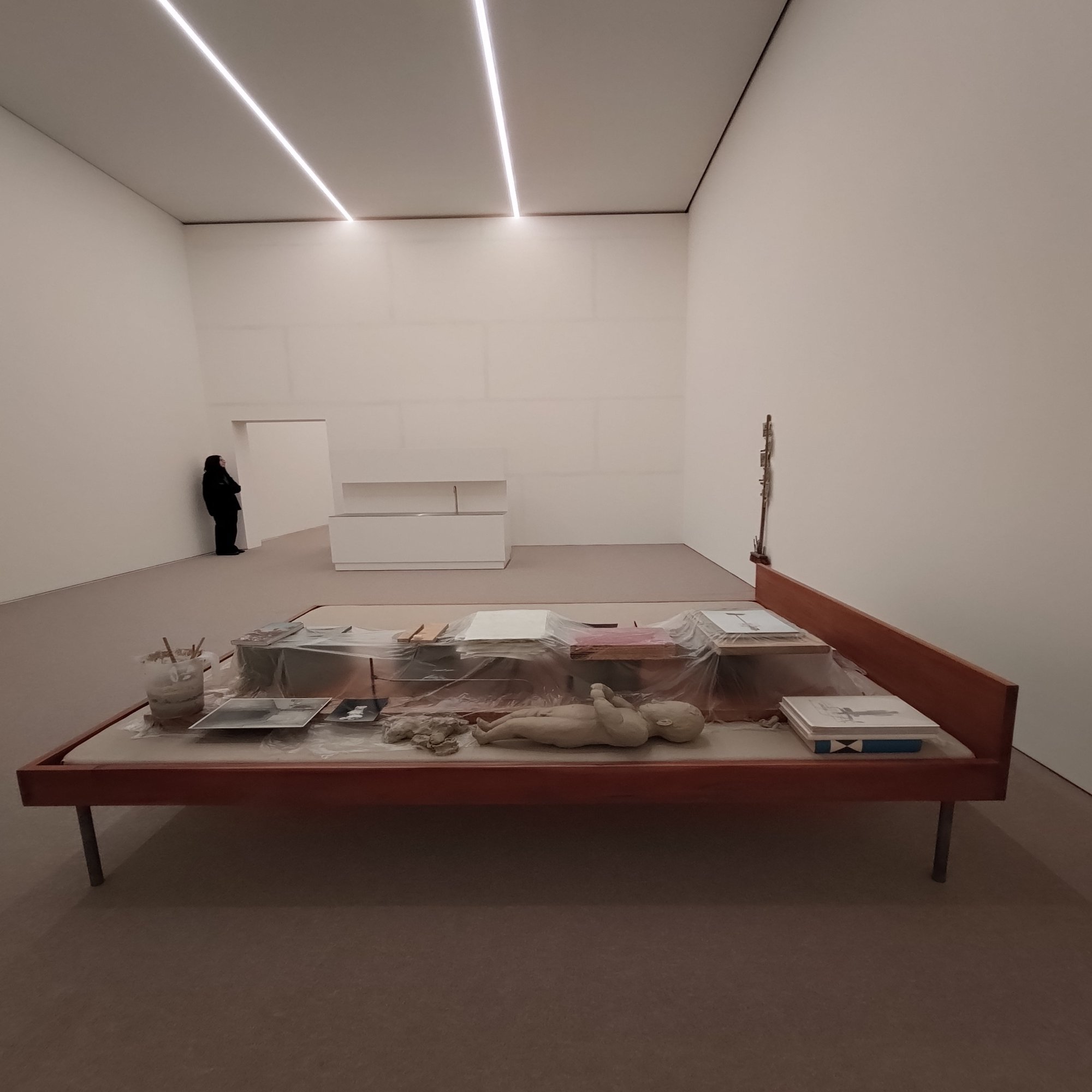 特筆すべきはその異様なまでの質感とスケール感。ブロンズを湿った粘土のように見せる卓越した技法や家具をあえて「88%のスケール」で制作する手法は、鑑賞者の現実感をじわじわと、しかし確実に狂わせてきます。(私も狂わされました)
