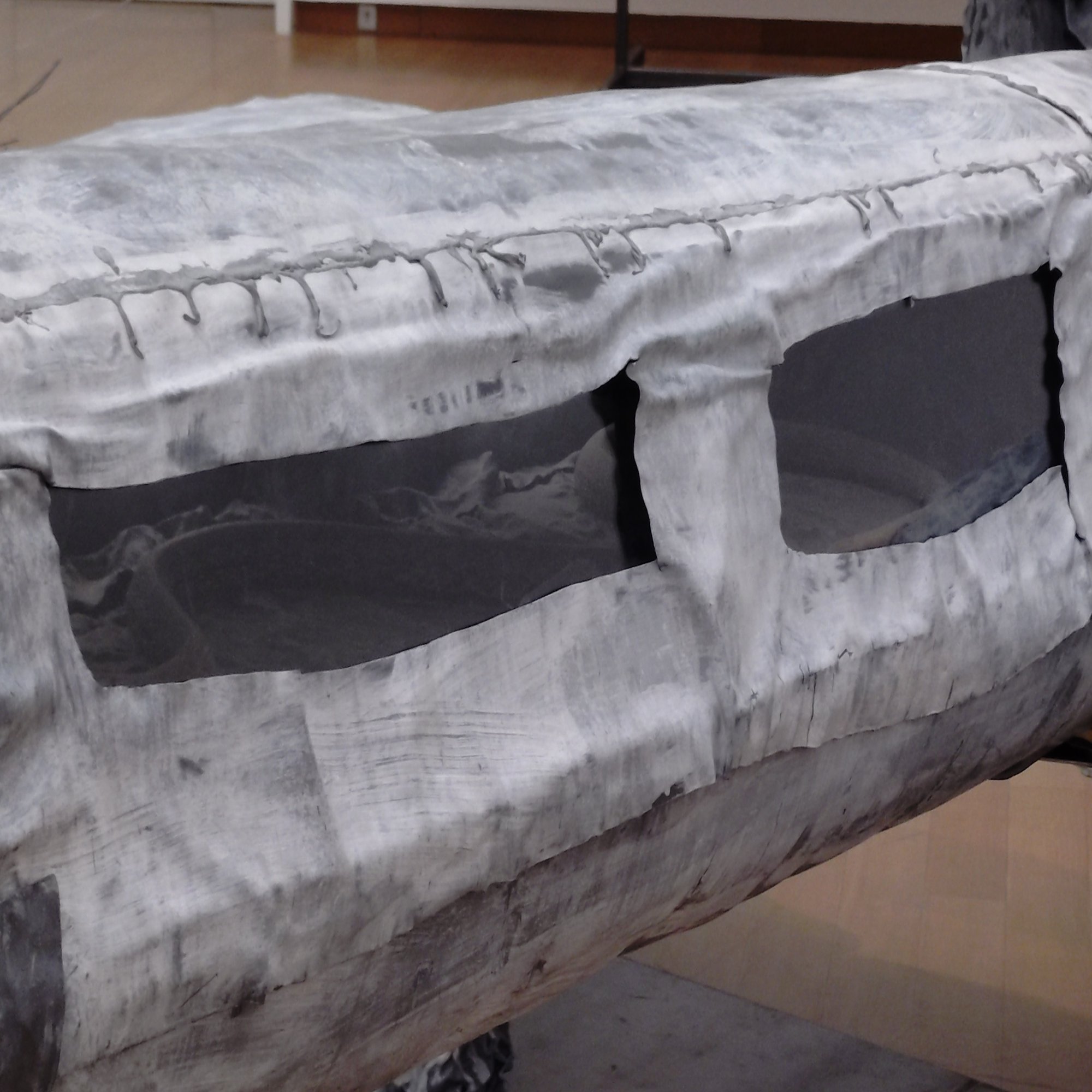 重く毒性のある鉛が、戦争の残渣と人類史の重荷を体現します。腐食したような質感の機体は、ナチス時代の軍事力と破壊の無意味さを象徴し、空虚な姿で沈んでいきそうです。