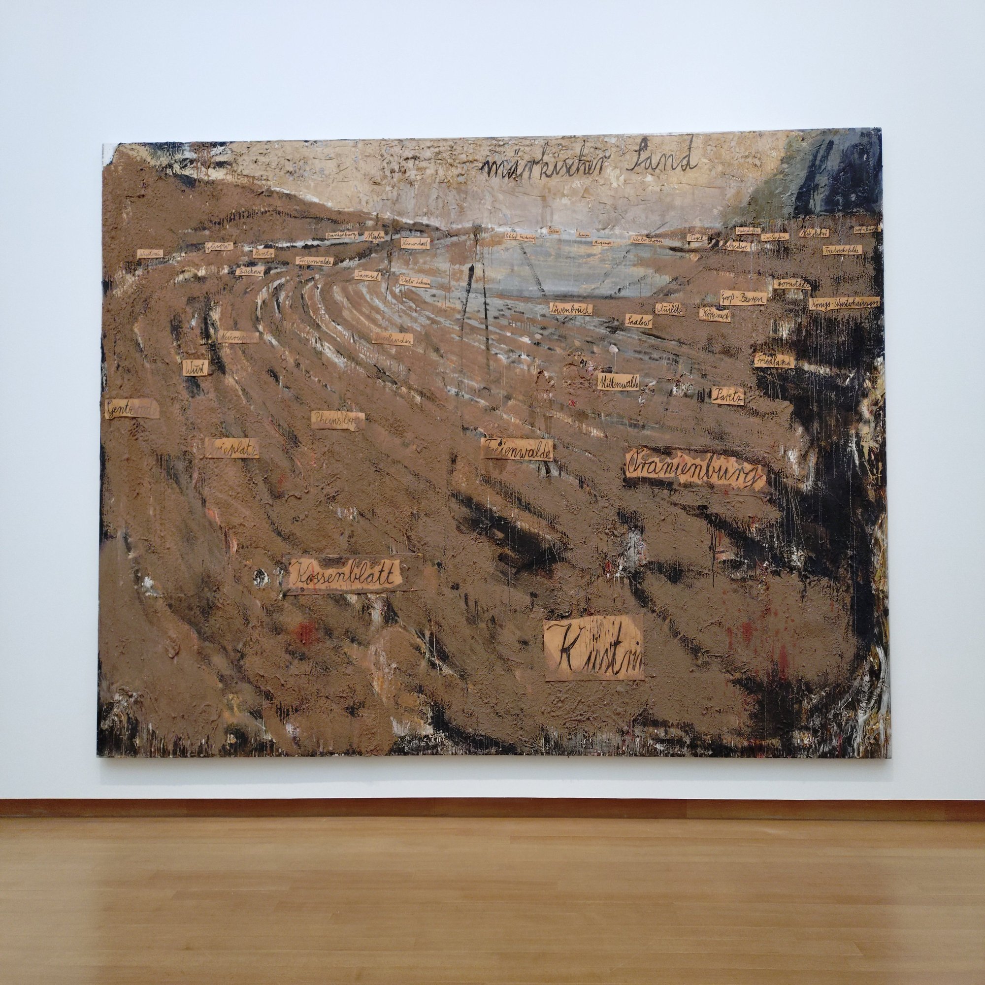 《Märkischer Sand》(1982年)は、砂や土を直接混ぜ込んだ広大な風景。戦後の荒廃した土地と記憶の堆積を、物質そのもので感じさせる力作です。