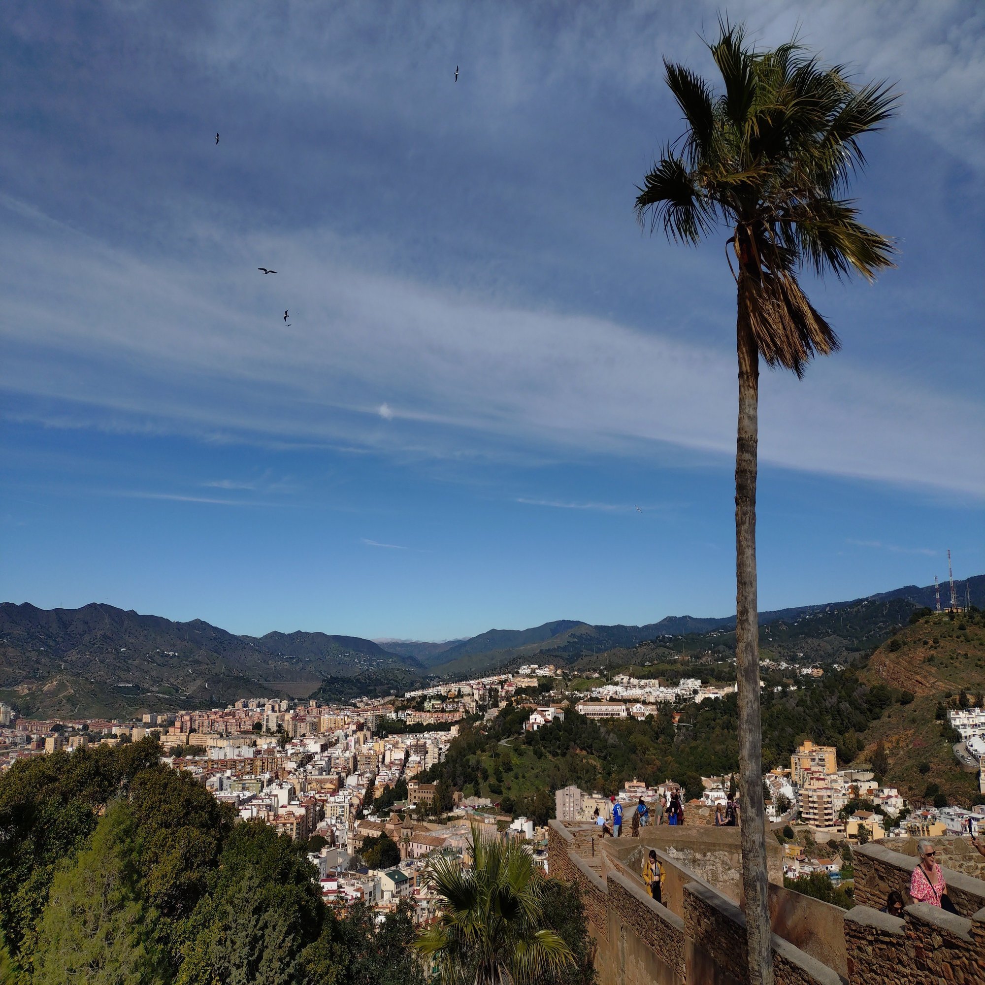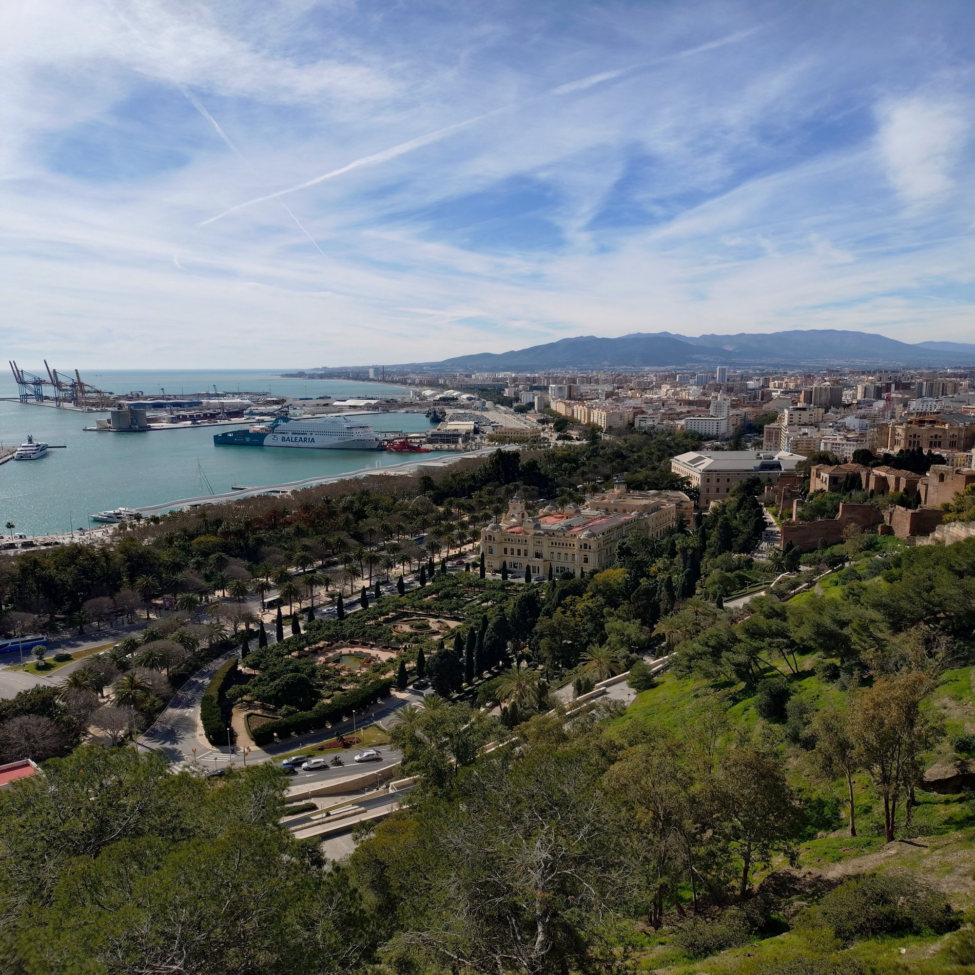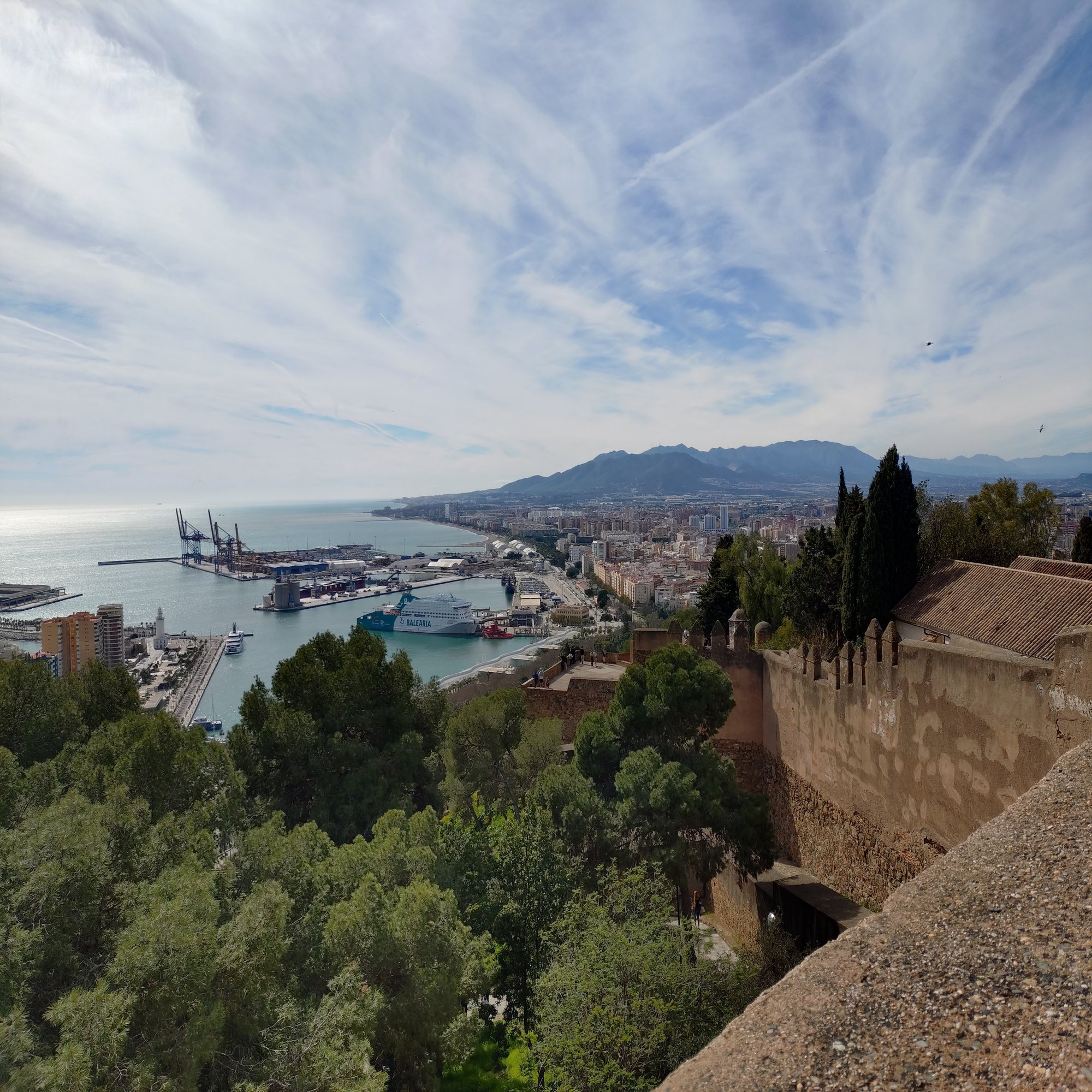 登り続けると、眼下にマラガの街並みと地中海が広がり始めます。