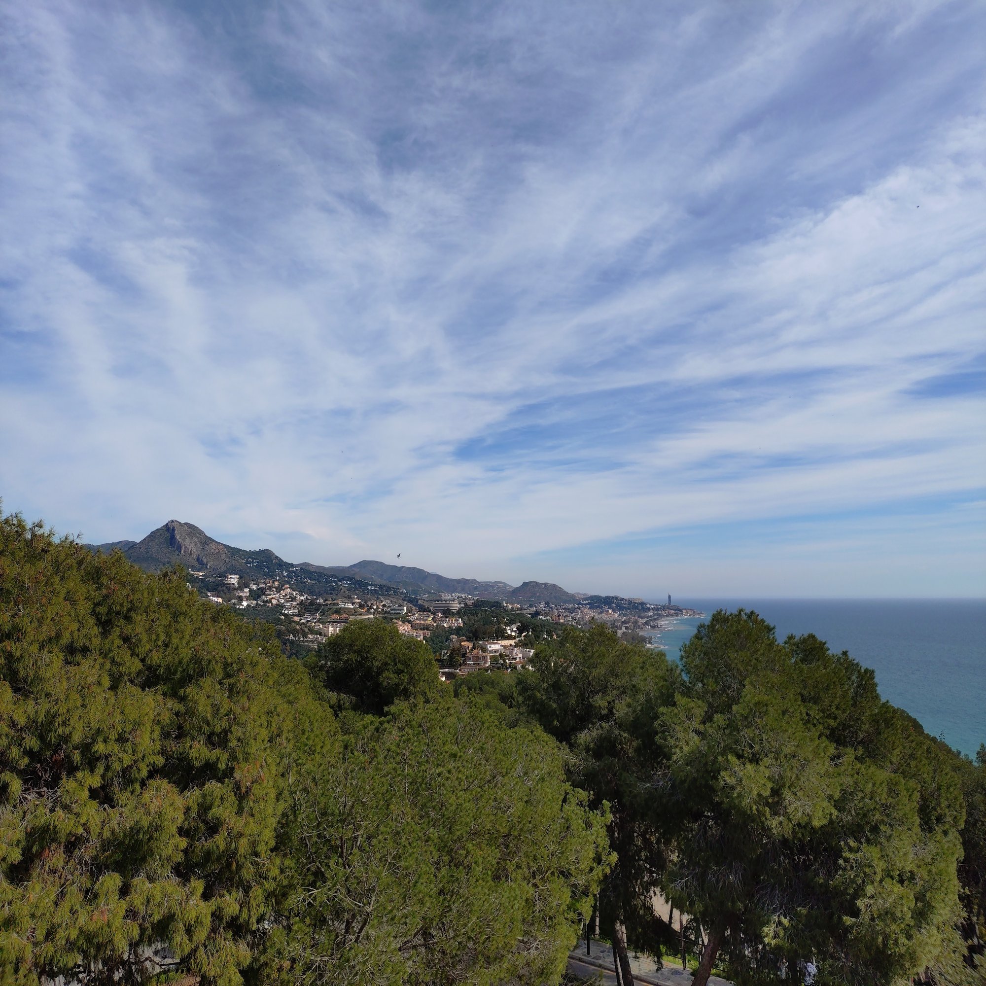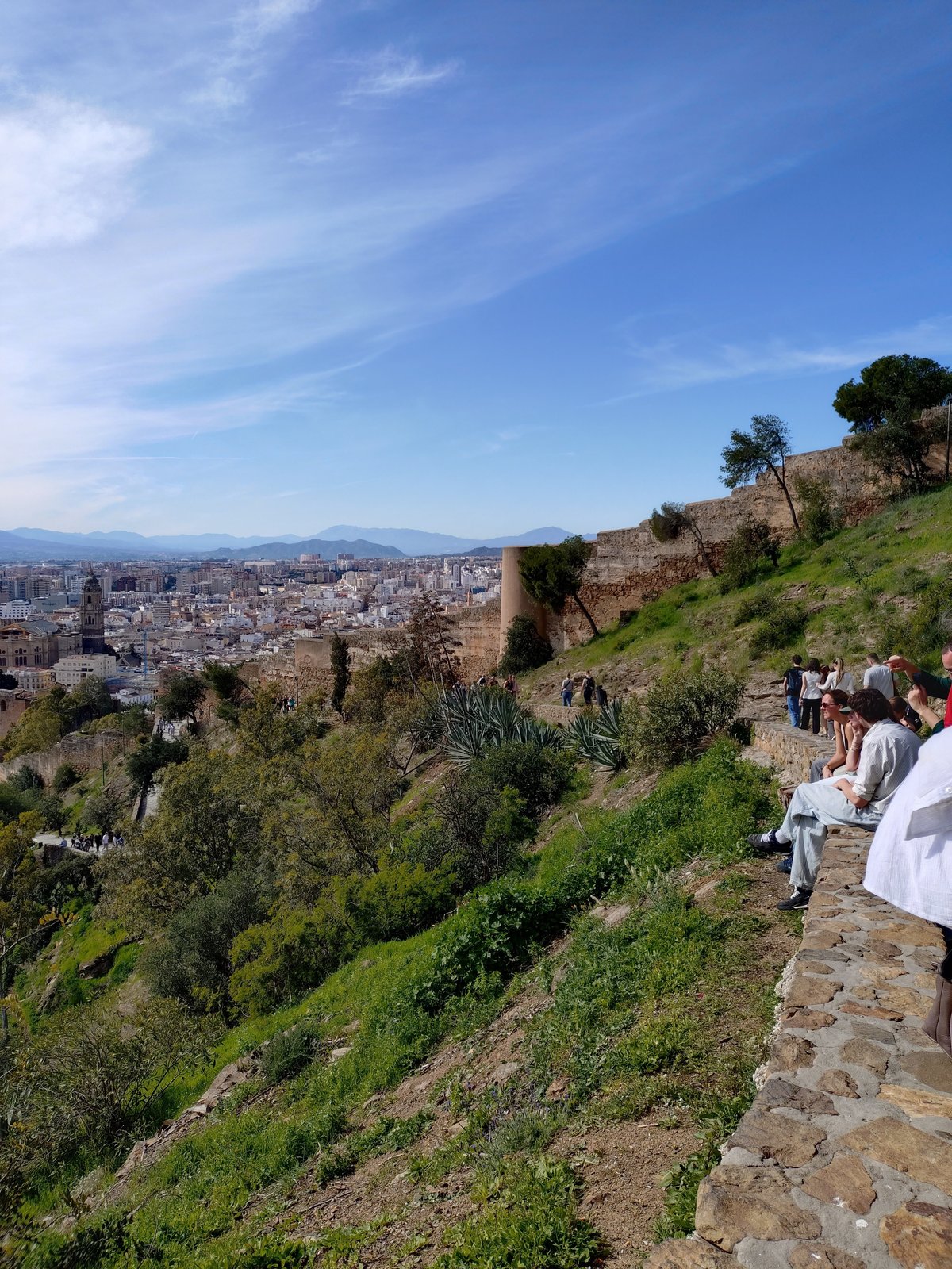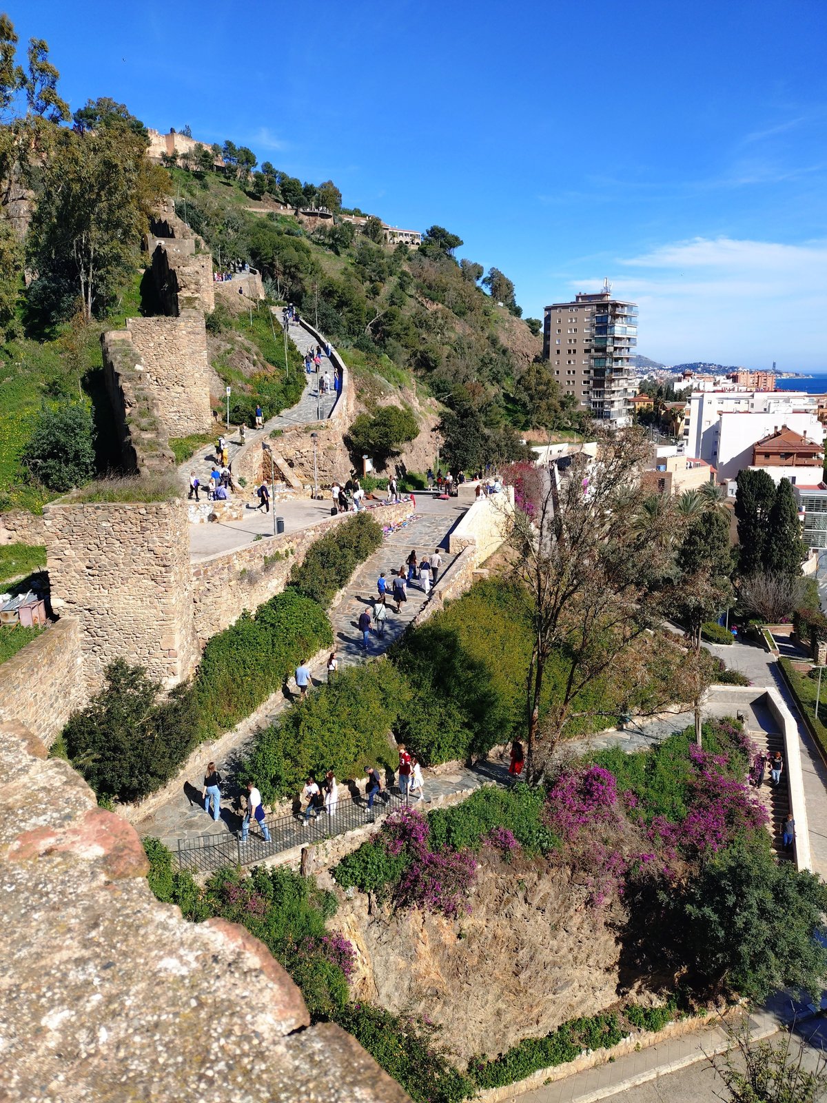 登り続けると、眼下にマラガの街並みと地中海が広がり始めます。