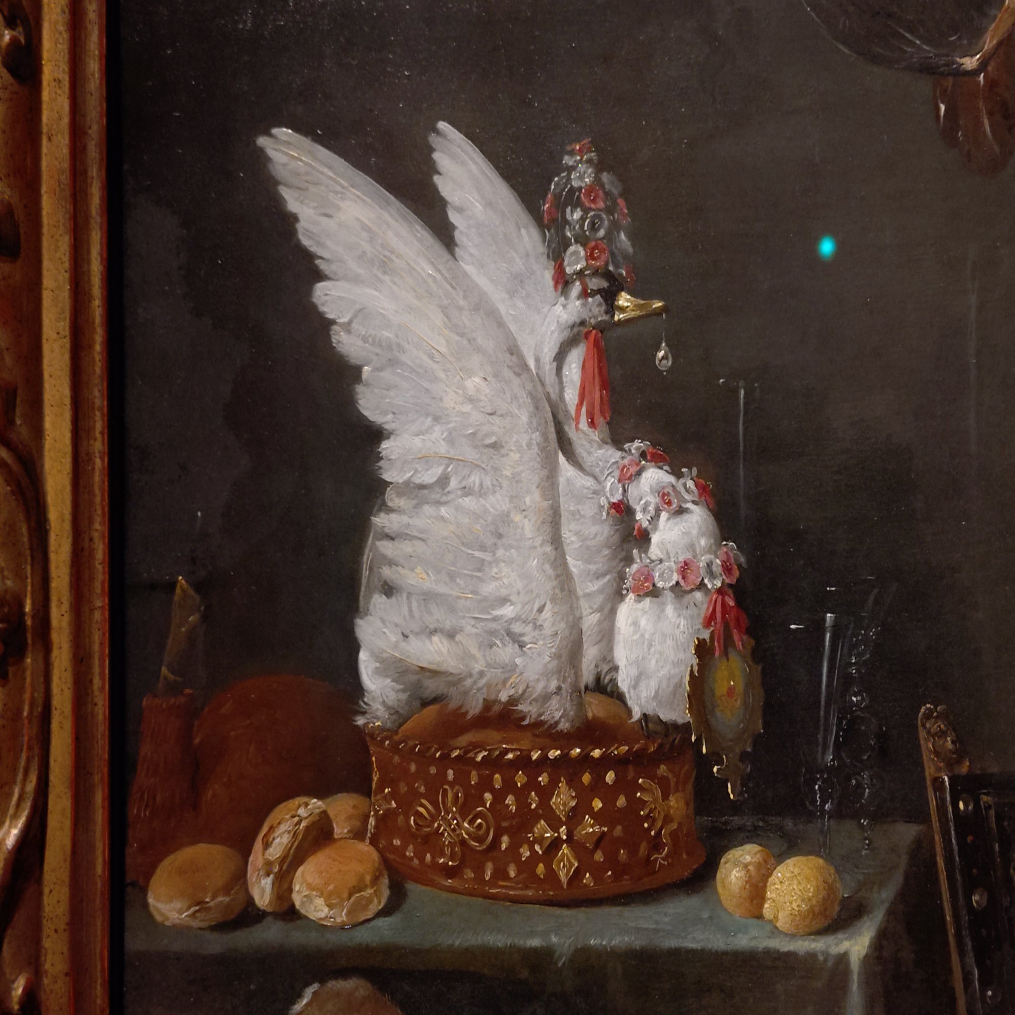 そして、その食卓の贅沢な装飾として扱われた鳥など。