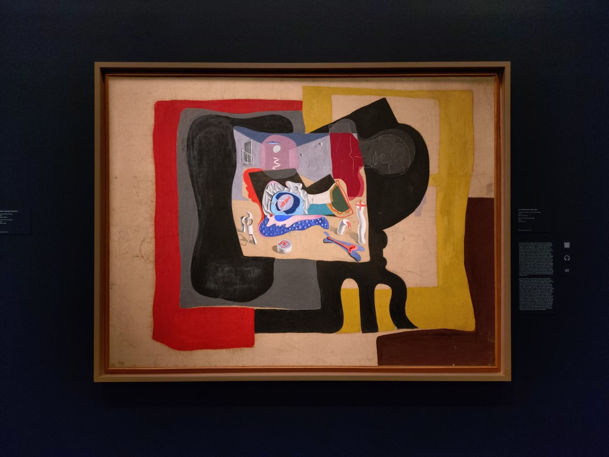 ピカソの作品からさかのぼること11年前に描かれたデ・キリコの形而上学的な静物画では、石膏像が時間の凍結された無機質な存在として描かれています。デ・キリコの作品に描かれた石膏像は外界の不在を静かに嘆いているのに対し、ピカソが描いた石膏像は、内側から溢れ出す欲望によって、今にも動き出しそうな生のエネルギーを孕んでいます。