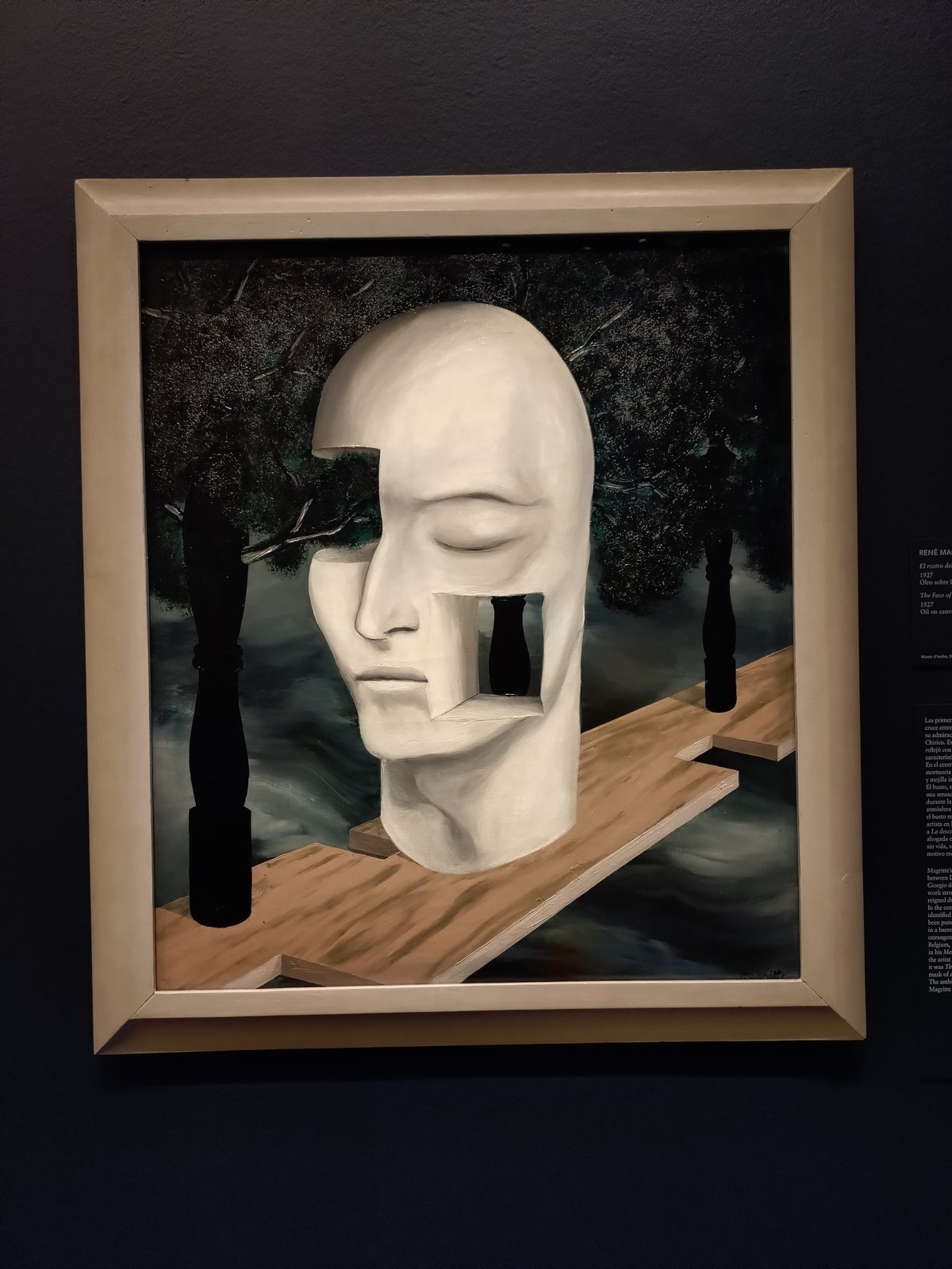ピカソの《Studio with Plaster Head》に着想を得たマグリットの初期の重要な作品の一つです。ピカソの石膏頭像が「天才の顔」として再解釈されるような、マグリットの知的遊び心が感じられます。