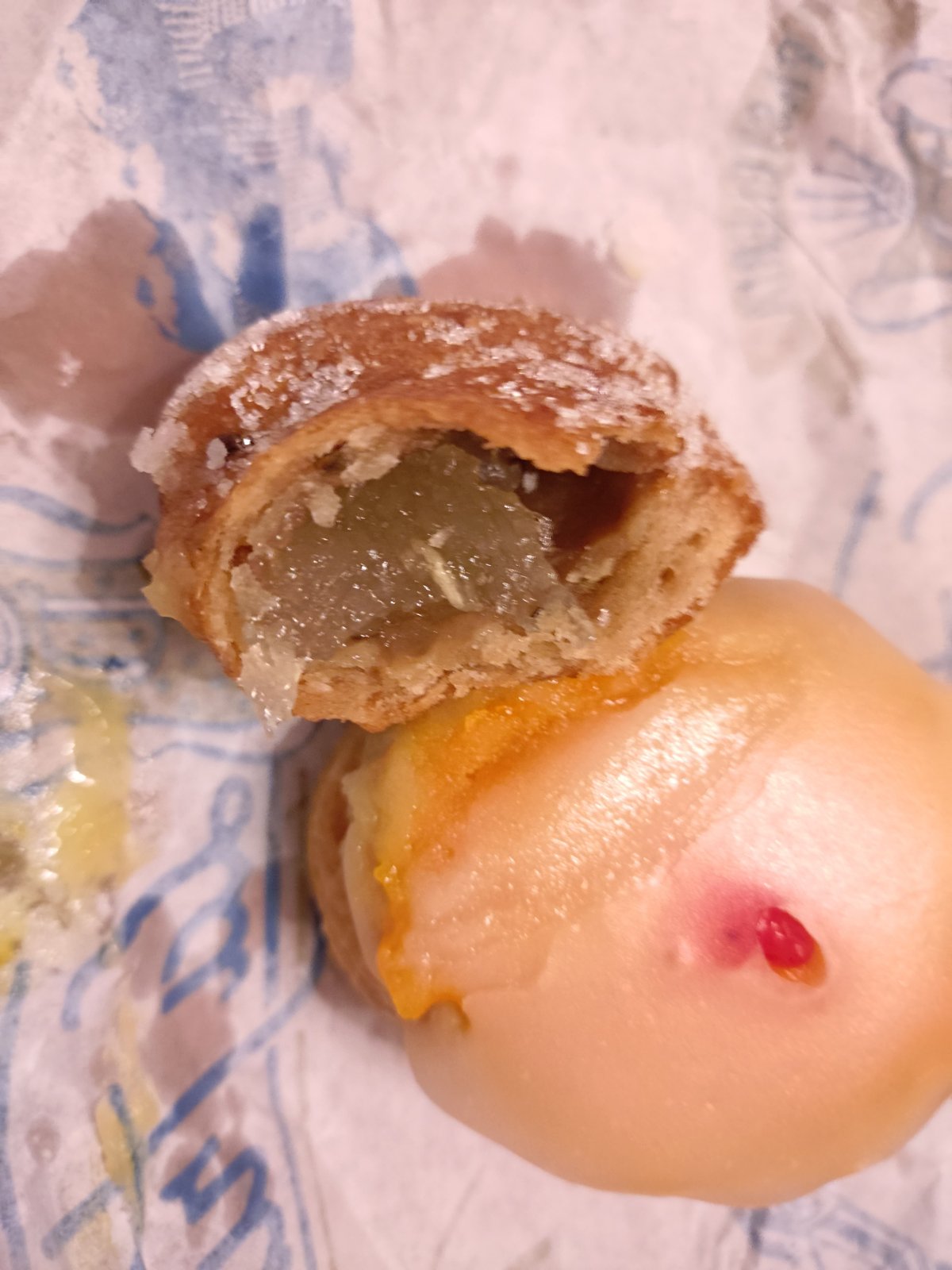 今日ではマラガのアイデンティティの一つとなり、多くの店で作られていますが、基本の形——サクサクのパイ生地、まろやかなカスタード、鮮やかなオレンジグラッセ、そしてチェリーのアクセント——は変わりません。それは、70年以上前に戦後の厳しい時代に、人々の心をそっとなぐさめた「やさしさの象徴」として、今も残っています。