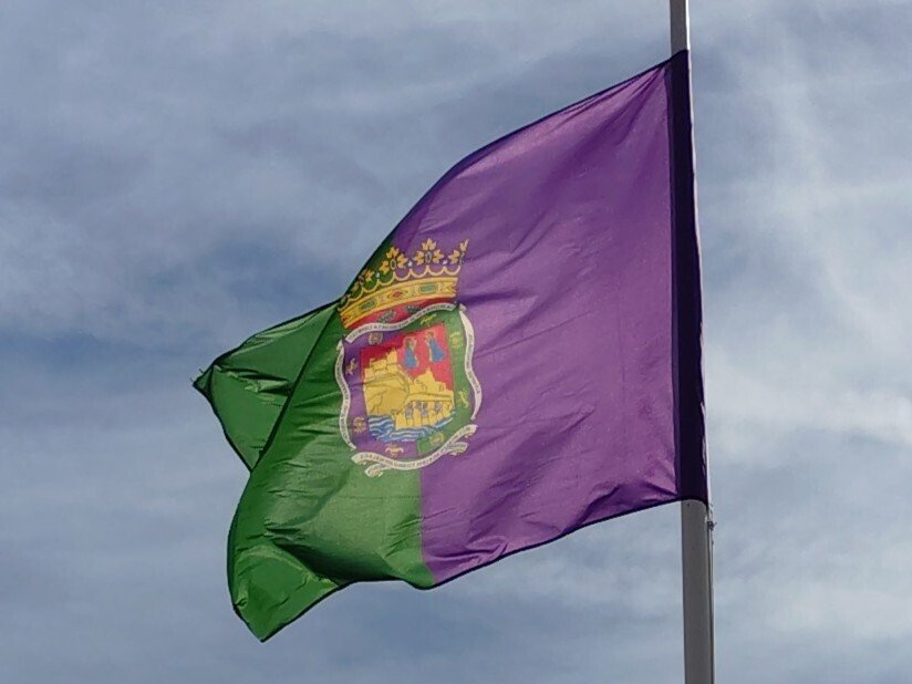 | ヒブラルファロ城で掲げられてたマラガ市の旗。旗が裏返っていますが……。 |